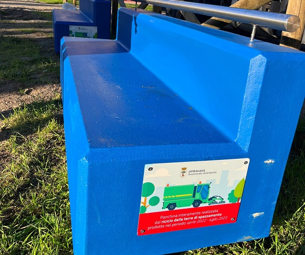 Sono state collocate nell’area giochi di Frigole le prime tre panchine realizzate grazie al riciclo delle terre di spazzamento raccolte dal servizio di servizio di igiene urbana nella città di Lecce. Altre due saranno collocate a San Cataldo e ulteriori cinque saranno collocate nei prossimi giorni in piazzette e spazi pubblici della città.