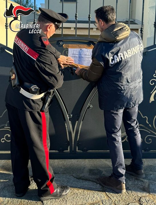 Congelati rapporti finanziari per un valore complessivo di oltre 740 mila euro e sequestrato un fabbricato costituito da due immobili siti nel Comune di Carmiano (LE) oltre a due autovetture di grossa cilindrata. Questi gli esiti dell’attività svolta questa mattina dai Carabinieri della Compagnia di Campi Salentina, nel corso dell’esecuzione del decreto emesso dal Giudice per le Indagini Preliminari del Tribunale di Lecce, su richiesta della locale Direzione Distrettuale Antimafia. Provvedimento emesso nei confronti di alcuni dei 37 soggetti arrestati lo scorso 6 novembre – di cui 28 finiti in carcere – nell’ambito di operazione di P.G. per associazione a delinquere di tipo mafioso, associazione finalizzata al traffico di sostanze stupefacenti, detenzione e porto illegale di armi da fuoco e da guerra nonché di ordigni ad alto potenziale esplosivo, estorsione, numerosi danneggiamenti a seguito di incendio. Tutti aggravati dal metodo mafioso.