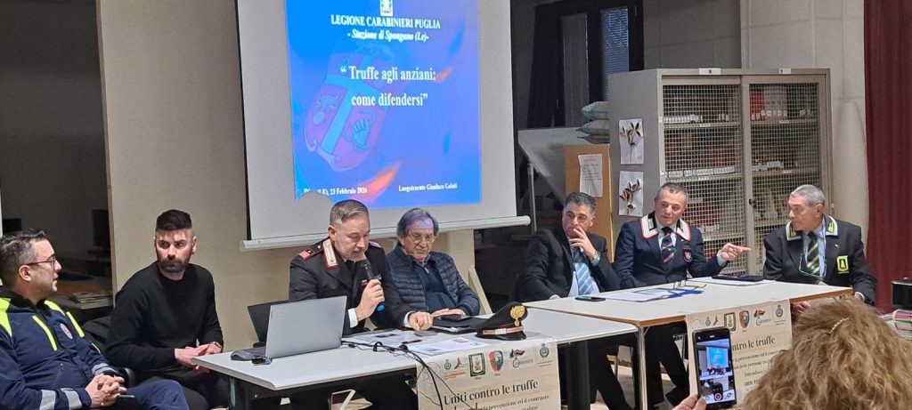 Nel pomeriggio di ieri, presso la Biblioteca Comunale di Diso, il Comandante della Stazione Carabinieri di Spongano ha tenuto un incontro informativo dedicato al fenomeno delle truffe in danno degli anziani. L’iniziativa è stata organizzata dalla Pro Loco di Marittima unitamente alla Associazione Nazionale Carabinieri – Sezione di Diso e all’ANFI – Associazione Nazionale Finanzieri d’Italia, registrando un’ampia partecipazione della cittadinanza. All’incontro hanno preso parte il Sindaco del Comune di Diso ed Autorità locali, i quali hanno contribuito attivamente al momento informativo, offrendo ulteriori spunti di riflessione e testimonianze maturate nel corso della loro esperienza professionale. Nel corso dell’intervento sono state illustrate le principali modalità di raggiro poste in essere ai danni delle persone anziane: telefonate fraudolente con richieste di denaro per presunti incidenti occorsi a familiari, falsi appartenenti alle forze dell’ordine o a enti pubblici, nonché tentativi di accesso alle abitazioni con pretesti vari.