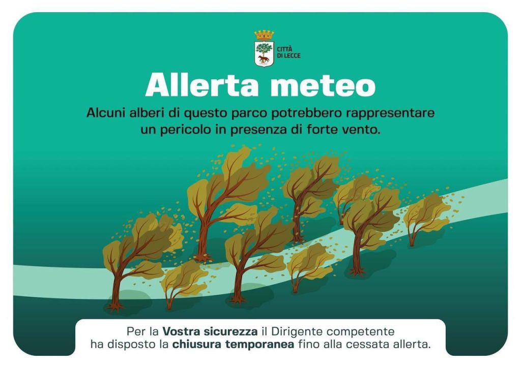 Lecce, chiusi i parchi per il maltempo